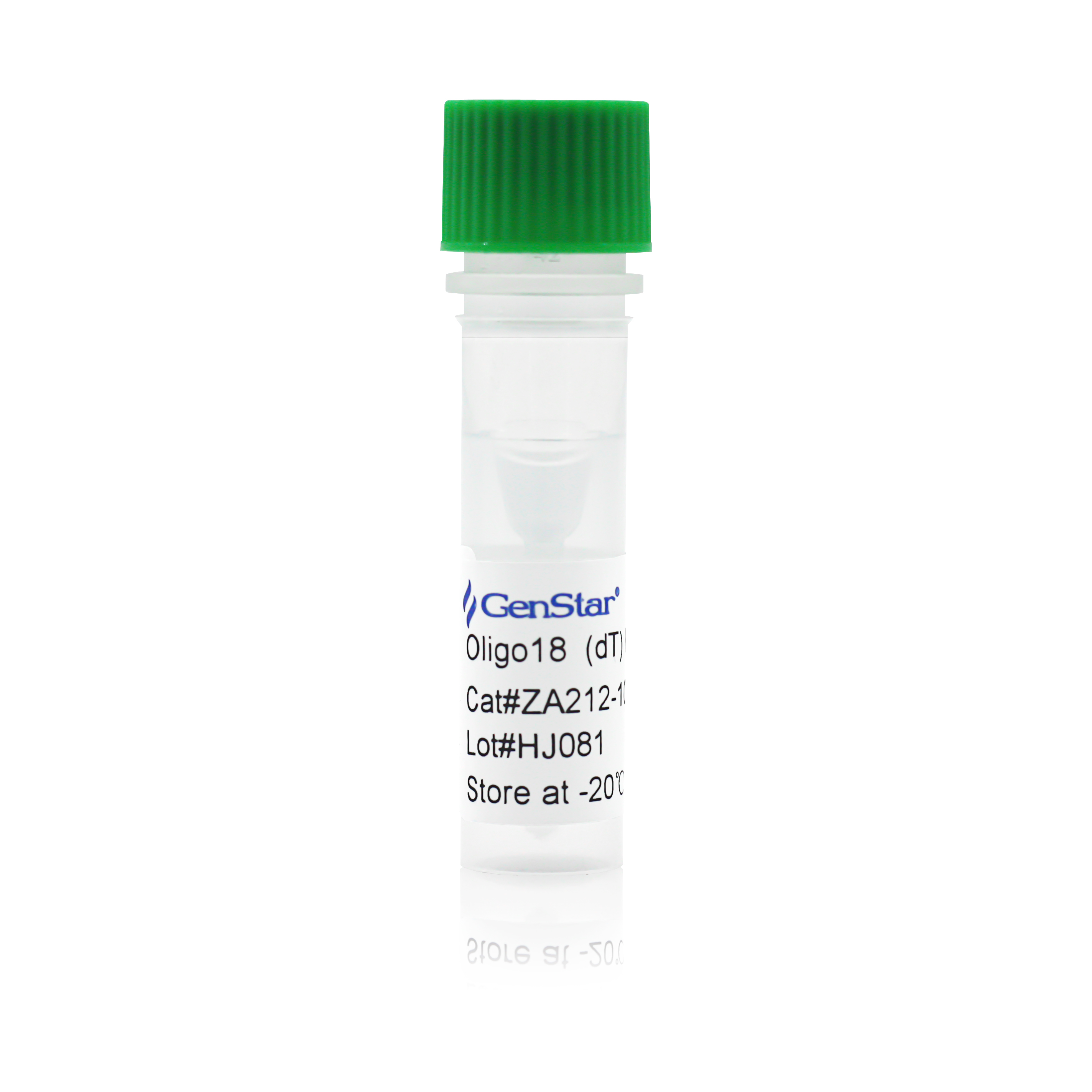 Oligo18(dT)引物是人工合成的單鏈 18-mer 寡核苷酸,濃度為 50 μM,具有 5′- 和 3′- 羥基末端,能以 poly(A) mRNA 作為模板合成 cDNA。