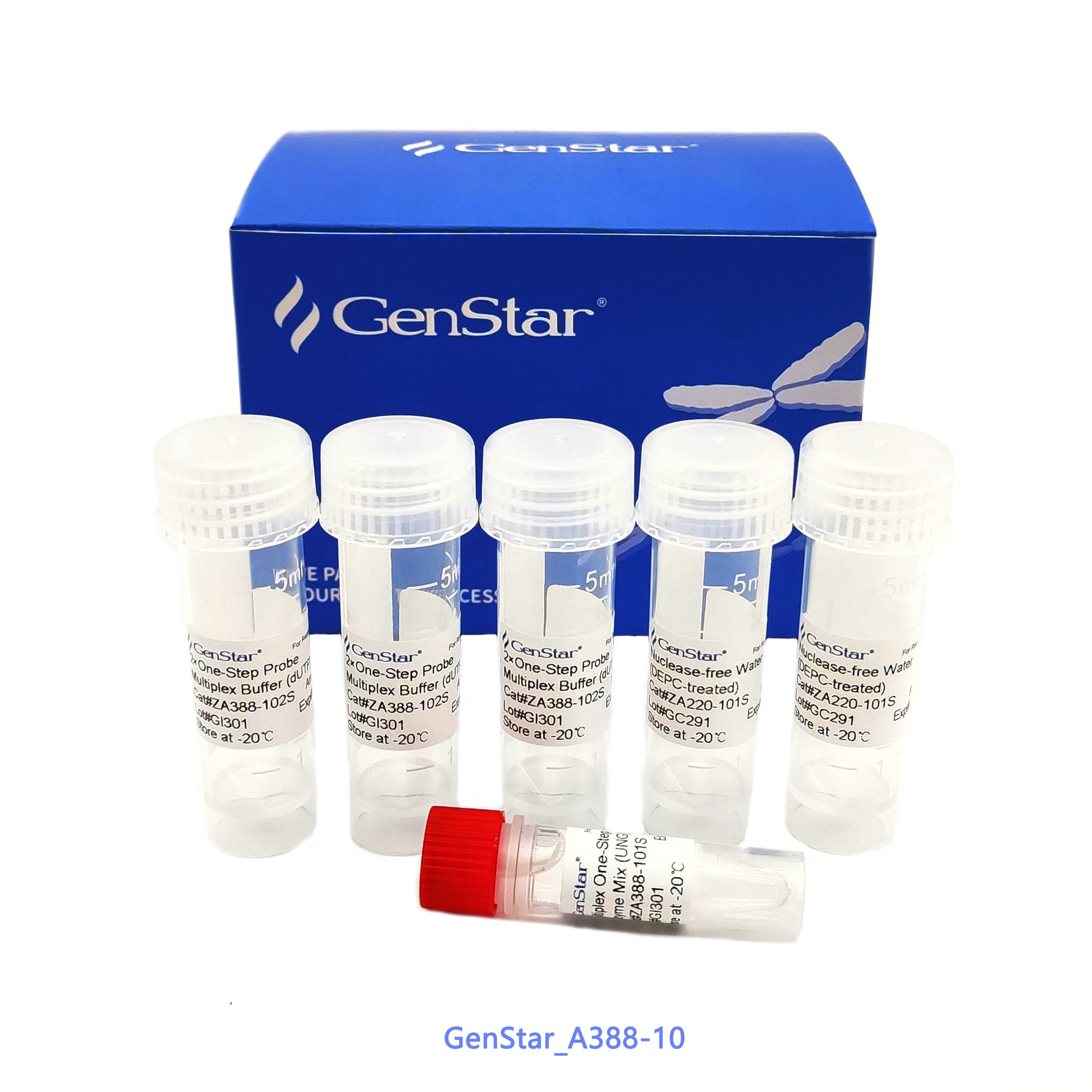 Multiplex One-Step qRT-PCR Probe Kit (UNG) 是一步法多重 qRT-PCR 試劑盒(探針法)。本試劑盒經(jīng)過特殊優(yōu)化,可有效完成 1-4 重 qRT-PCR 檢測,靈敏度高、特異性強。在實驗的過程中,cDNA 合成和 qPCR 反應(yīng)在同一反應(yīng)體系中完成,簡化了實驗操作、降低了污染的風(fēng)險。另外本試劑盒采用熱敏 UNG 防污染系統(tǒng),有效防止氣溶膠污染,且熱敏 UNG 在逆轉(zhuǎn)錄時可迅速失活,保證 qRT-PCR 的擴增效率。本產(chǎn)品適用于 RNA 病毒、微量 RNA 模板的多重檢測,靈敏度可達到 1 pg 總 RNA 或 <10 拷貝的 RNA 模板。